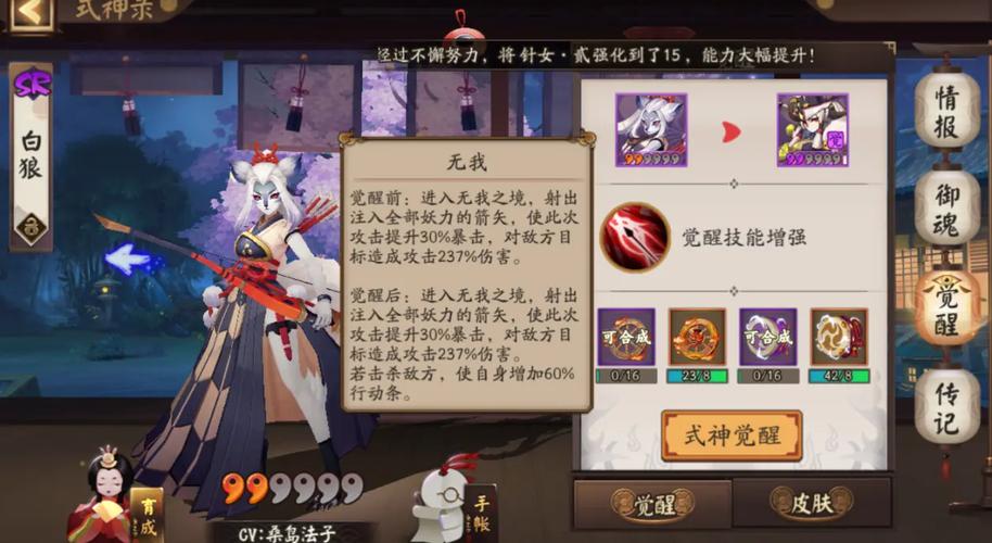 〖叁〗、兔丸的进阶玩法 在进阶玩法中,兔丸可以通过提升自身的技能等级和升星来提升自身的战斗能力。此外,可以通过搭配合适的御魂、魂灵和神秘御宝对兔丸进行进一步强化和提升。作为一名资深的游戏爱好者,在使用兔丸的同时,也可以探索其他型式神的搭配方式,打造出更加强大的输出阵容。