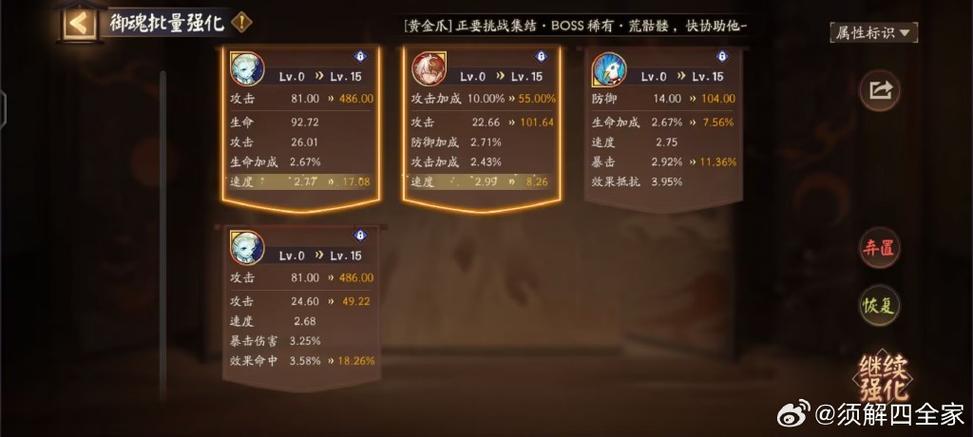 核心御魂选取 地藏像4件套:这是椒图的首选御魂方案。地藏像能为椒图提供强大的护盾效果,当椒图受到致命伤害时,有几率触发护盾,避免被秒杀。配合椒图的分摊机制,可以显著提升整个队伍的稳定性。招财猫4件套:适合需要频繁释放技能的场合。