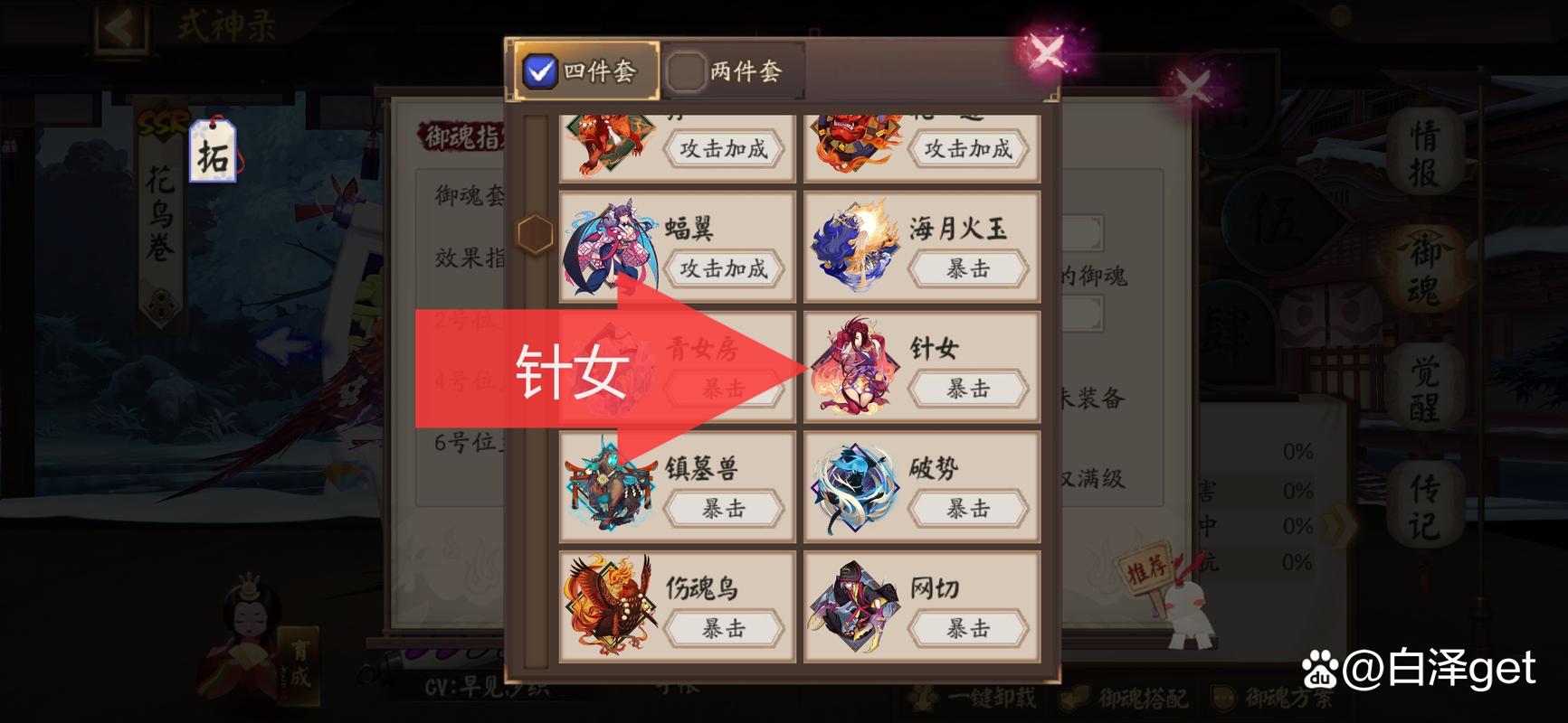 搭配建议:PVE环境中,推荐使用针女四件套+暴击/攻击两件套。这样的搭配可以确保少羽大天狗拥有高额的输出,同时保证暴击率,以达到最佳的输出效果。具体应用场景 突破:在突破副本中,少羽大天狗的针女御魂搭配可以迅速击败敌方单位,提高通关效率。