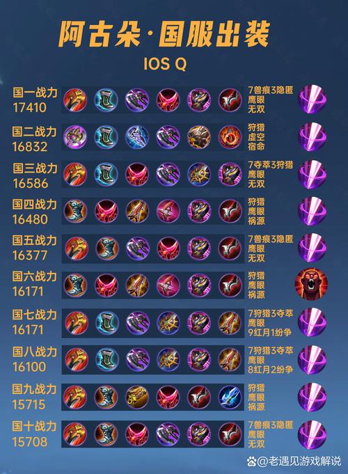 〖贰〗、持续输出型英雄:选取法术攻击和法术穿透较高的铭文,如“梦魇”、“心眼”。坦克型英雄:选取最大生命值和生命回复速度较高的铭文,如“调和”、“献祭”。出装选取 根据英雄定位选取装备:战士:优先选取攻击力、防御力和生存能力的装备,如“抵抗之靴”、“红莲斗篷”、“不详征兆”。