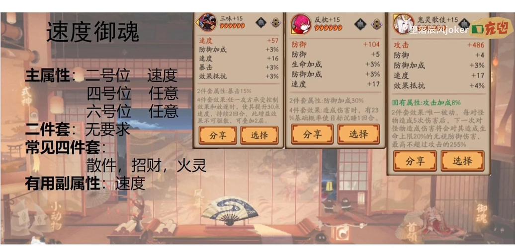 苍风一目连御魂搭配指南:核心思路 增加速度与暴击率:苍风一目连作为控制型辅助,其核心技能“神风”依赖速度和暴击率来确保快速出手并有效削弱敌方。