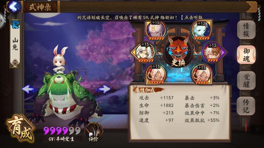 〖叁〗、阴阳师中山兔堆速度以达到180的攻略如下:核心御魂选取:招财猫4件套:山兔作为拉条式神,招财猫套装能提供额外的鬼火获取机会,有助于队伍的整体输出和循环。2号位御魂:5星以上速度御魂:山兔的速度至关重要,因此2号位必须选取5星以上的速度御魂。这是堆速度的基础,5星以下的御魂很难达到180的速度要求。