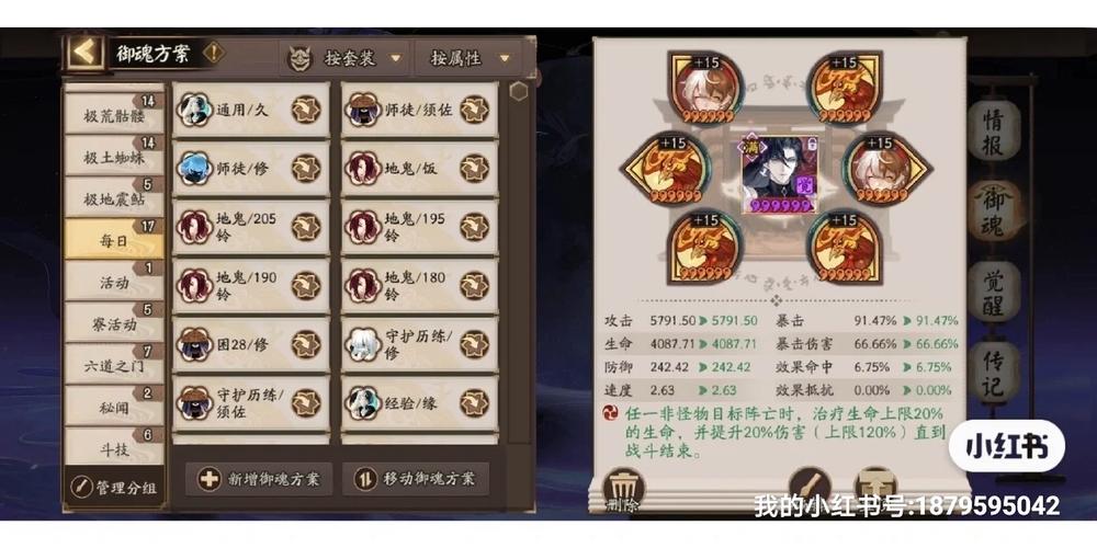 〖壹〗、空相面灵气、粉婆婆、因幡辉夜姬、初翎山风、阎魔御魂配置:阎魔配置散件或招财猫、速度、效果命中、生命加成,作为一速。空相面灵气配置散件,主堆速度、二号位速度,属性随意,二速。粉婆婆配置兵主部、速度、攻击加成、攻击加成。因幡辉夜姬配置蚌精、速度、生命加成、暴击伤害。