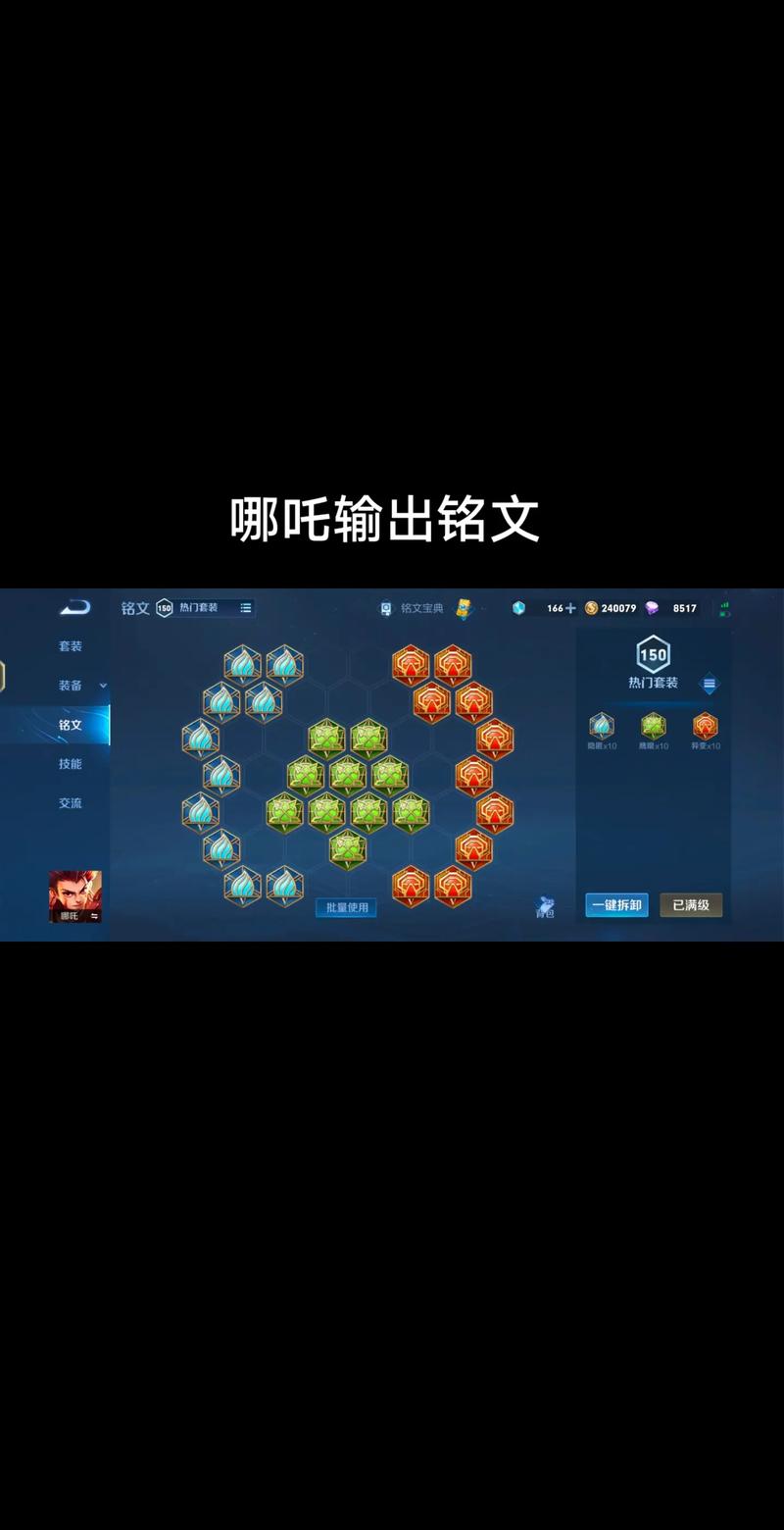 〖肆〗、绿色铭文:推荐选取10个鹰眼。鹰眼铭文可以提供物理攻击+9和物理穿透+64的属性。与异变铭文搭配,可以进一步增强哪吒的物理穿透能力,使其在面对敌方坦克或战士时也能造成可观的伤害。蓝色铭文:推荐选取10个隐匿。隐匿铭文可以提供物理攻击+16和移速+10%的属性。