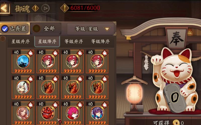 〖肆〗、阴阳师玩家多余的御魂可以在御魂界面找招财猫批量奉纳得到金币。纳奉四星及以上御魂更有几率获得神赐的随机奖励。纳奉四星御魂可获得随机奖励这点类似于开箱子,所以继抽军火之后,阴阳师御魂又多了一项大坑,开箱子。