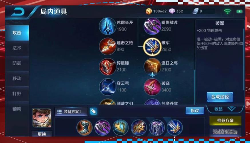〖壹〗、第一件装备:红莲斗篷。增加生命值和法术防御,提高生存能力。同时,其被动效果可以对周围敌人造成持续的法术伤害,帮助刘禅快速清理野怪。第二件装备:魔抗斗篷。进一步提高法术防御,增加对法术伤害的抵抗能力。第三件装备:不祥征兆。增加生命值和物理防御,提升生存能力。