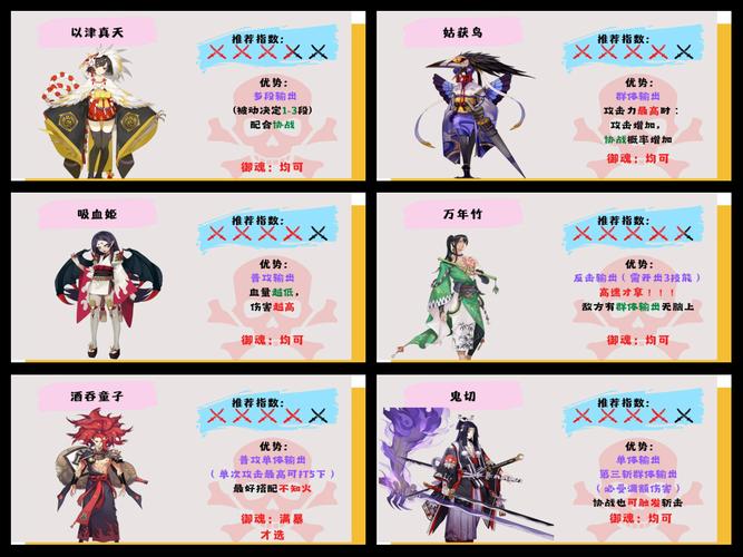 〖贰〗、茨木童子:作为一位高输出的SSR式神,茨木童子非常适合使用荒骷髅套装来增加其对低生命值目标的伤害,从而更有效地击败敌人。玉藻前:玉藻前同样是一位高输出的SSR式神,其技能能够对敌人造成巨额伤害。使用荒骷髅套装可以进一步提升其对低生命值目标的伤害能力。