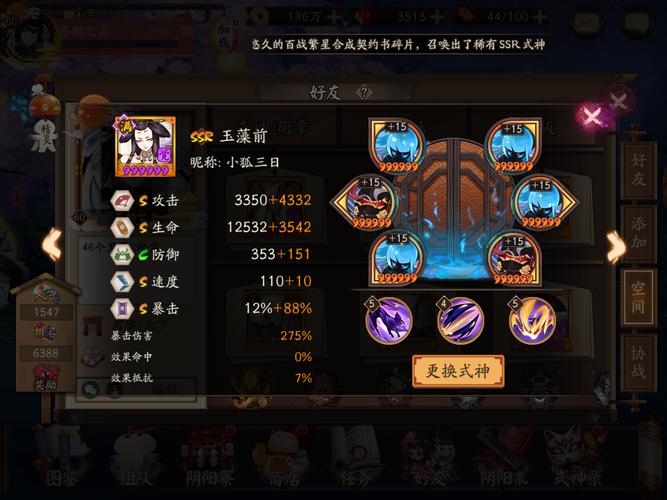 鹿丸:狂骨荒骷髅御魂选取狂骨荒骷髅,因为狂骨御魂能够提供基于鬼火数量的额外伤害加成,而荒骷髅则能在攻击BOSS时提供额外的伤害加成,两者结合能够大幅提升鹿丸的输出能力。属性选取上,攻攻爆/暴,即攻击加成、攻击加成、暴击/暴击伤害,以确保鹿丸的输出最大化。