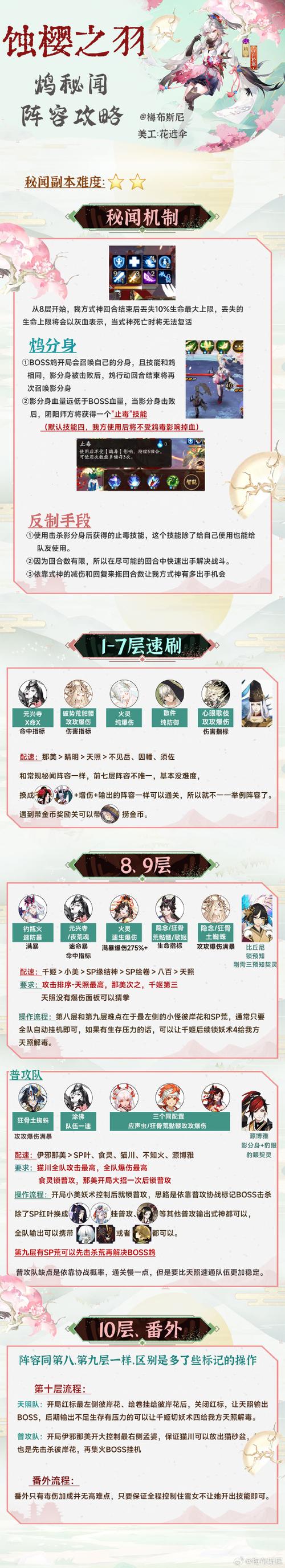 核心式神:鸩。鸩以其独特的毒系伤害见长,适合后手阵容。建议御魂搭配为4件套狰,2号位速度,4号位攻击,6号位生命,以确保高速输出和一定的生存能力。辅助式神:花鸟卷:同样使用狰御魂,提供治疗和反击能力。辉夜姬:携带三味御魂,为队伍提供稳定的鬼火供应,同时增加队伍的灵活性。