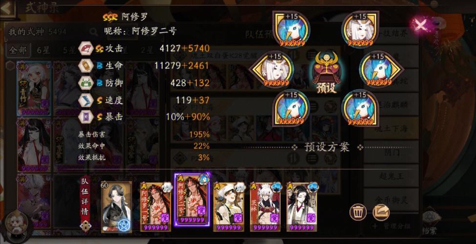 这套阵容包括鬼使黑(狂荒,六星)、丑女(狂荒,随意等级)以及山兔(火灵,等级随意)(或者山兔散件,搭配一个火灵狗粮或座敷)。首先关注鬼使黑,虽然每个位置都有些偏颇,但荒骷髅运气颇佳,副属性是暴击,拥有+40的暴击值。其他属性则可以专注于堆叠暴伤。