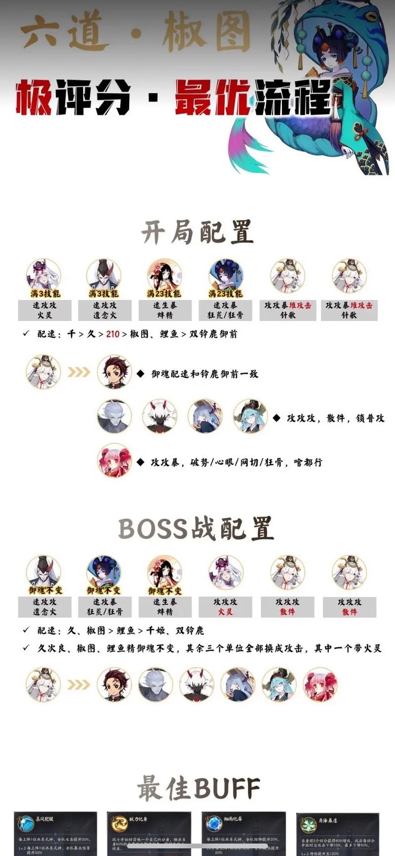 阴阳师PVE最强阵容 阵容搭配:不知火+缚骨清姬+白藏主+夜溟彼岸花+阎魔/孟婆+神乐。不知火:火灵,攻攻暴伤,速度128,提供稳定输出和增益效果。缚骨清姬:招财猫,速攻,速度要快,负责控制和持续输出。白藏主:木魅/薙魂,速生生,速度224,提供保护和增益效果。