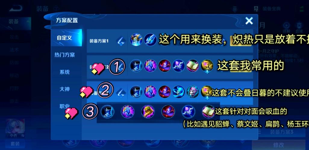 出装方案一:战斧宗师破军流 核心装备:暗影战斧、宗师之力、破军。这套出装前期可能稍显乏力,但一旦做出宗师之力,刘备的伤害和强度会有质变。后续装备:末世,用于提升续航、坦度和绞肉能力。铭文推荐:16爆铭文,确保刘备的攻速足够,使一技能强化普攻不会卡手。