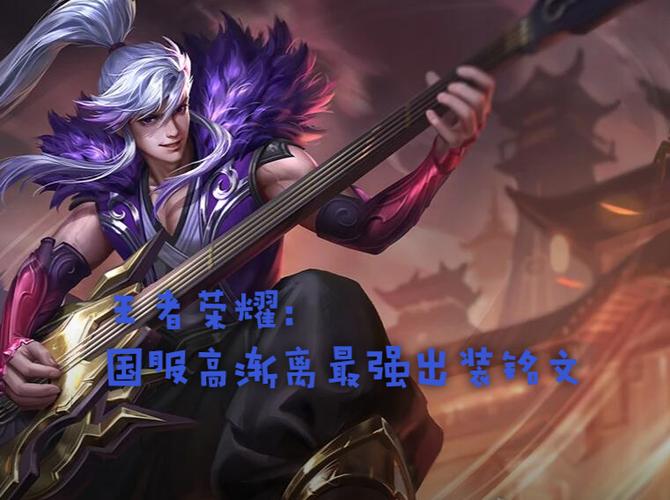 〖伍〗、王者荣耀高渐离出装推荐:核心出装思路 以输出为主,扛伤为辅的半肉出装:高渐离作为近战法师,需要在团战中承担输出和一定的抗伤任务,因此选取半肉出装能够让他在保持高输出的同时,也具备一定的生存能力。