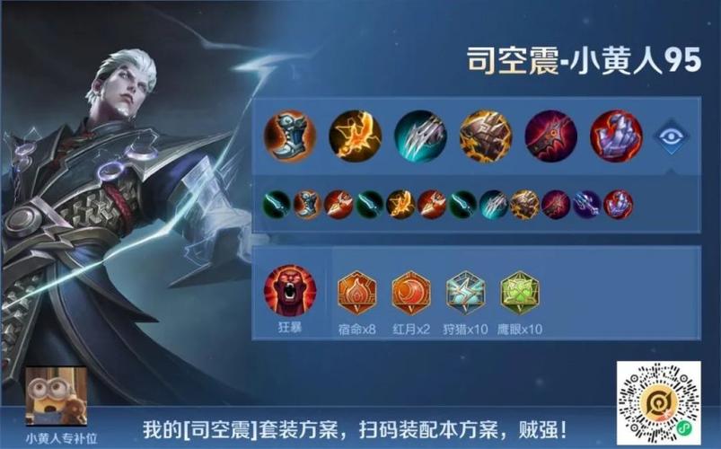 〖肆〗、王者荣耀暃最强出装铭文搭配推荐如下:出装推荐:核心装备:黑切和破军。黑切提供攻击力、冷却缩减和穿甲效果,非常适合暃这种需要频繁释放技能并打出高爆发的英雄。破军则能极大提升暃的收割能力,对低生命值的敌人造成额外伤害。半肉出装:为了提高容错率,暃可以选取半肉出装。