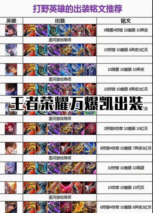 推荐出装:抵抗之靴、暗影战斧、破军、名刀·司命、无尽战刃、宗师之力。刺客英雄:核心思路:以攻击装备为主,兼顾生存。推荐出装:影忍之足、无尽战刃、破军、名刀·司命、宗师之力、破甲弓。法师英雄:核心思路:以法术攻击装备为主,兼顾生存。推荐出装:冷静之靴、博学者之怒、痛苦面具、虚无法杖、辉月、炽热支配者。