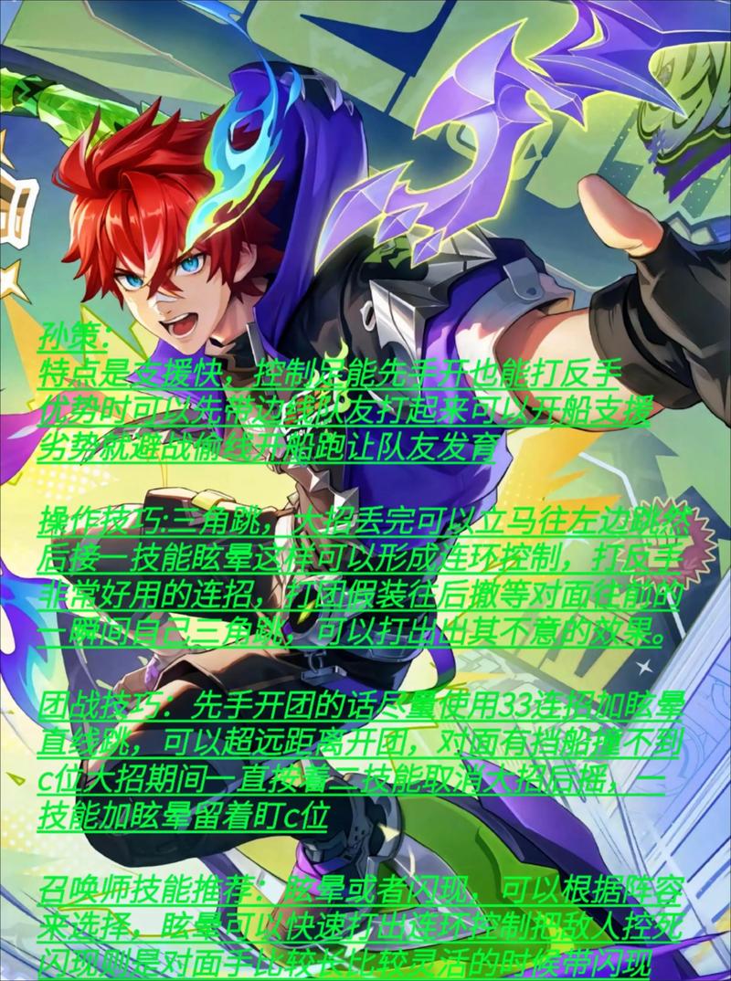 〖伍〗、孙策的出装建议为抵抗之靴、暗影战斧、无尽战刃、破军、名刀·司命,铭文建议搭配红色异变、蓝色隐匿、绿色鹰眼。以下是具体的分析和搭配技巧:出装建议 核心装备:抵抗之靴:增加生存能力,减少控制效果,提高移动速度。暗影战斧:提供物理攻击、物理穿透和冷却缩减,增强输出能力。
