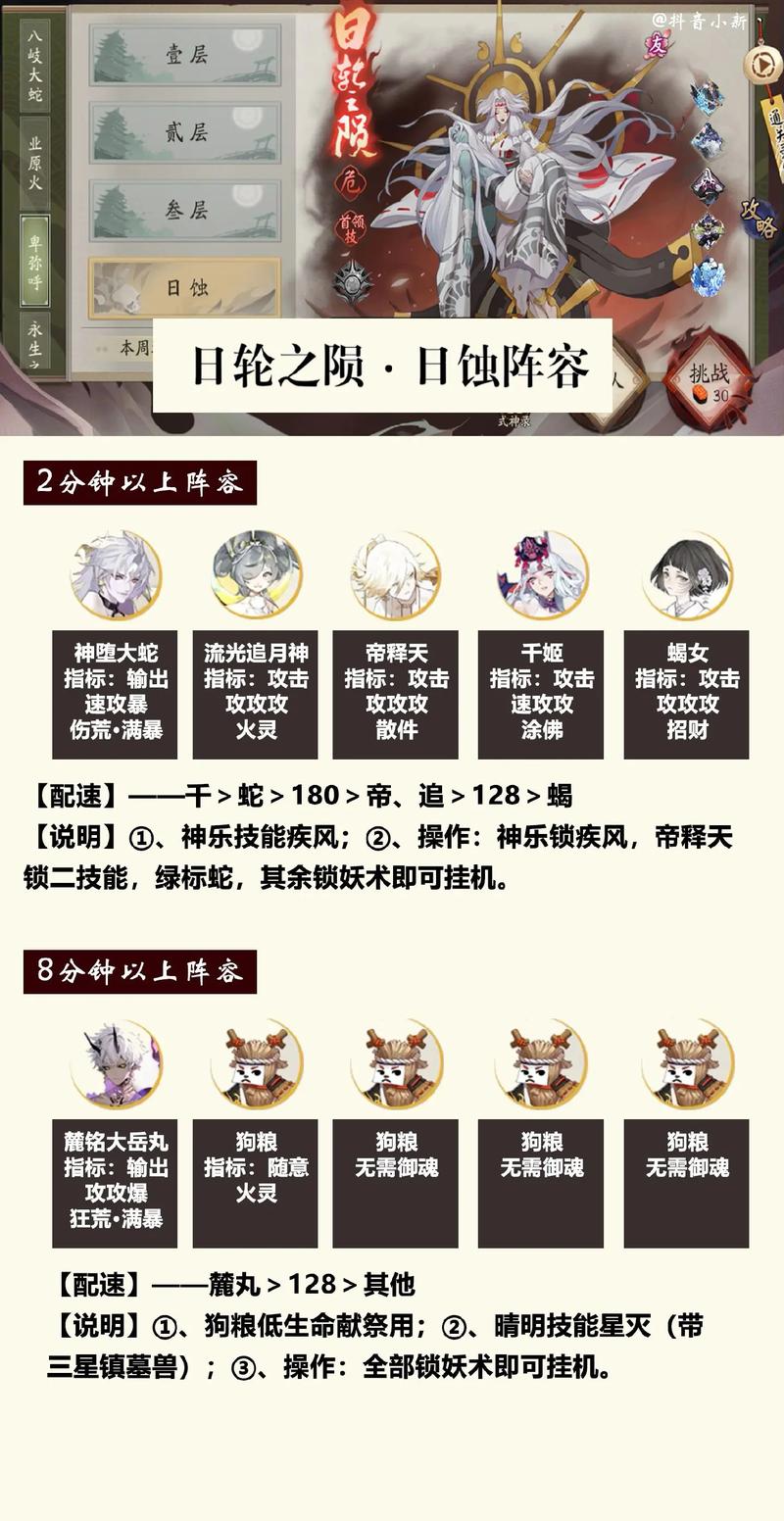 〖壹〗、阴阳师阴阳之守首领挑战第一关过关攻略如下:阵容推荐 阵容一:黑童子、鬼王酒吞童子、双妖琴、丑女。这一阵容主要依赖黑童子的高输出和鬼王酒吞童子的增伤效果,双妖琴则用于快速拉条,增加出手次数,丑女则负责连接BOSS,提高伤害输出。阵容二:清姬、蜜桃、书翁、丑女、两面佛。