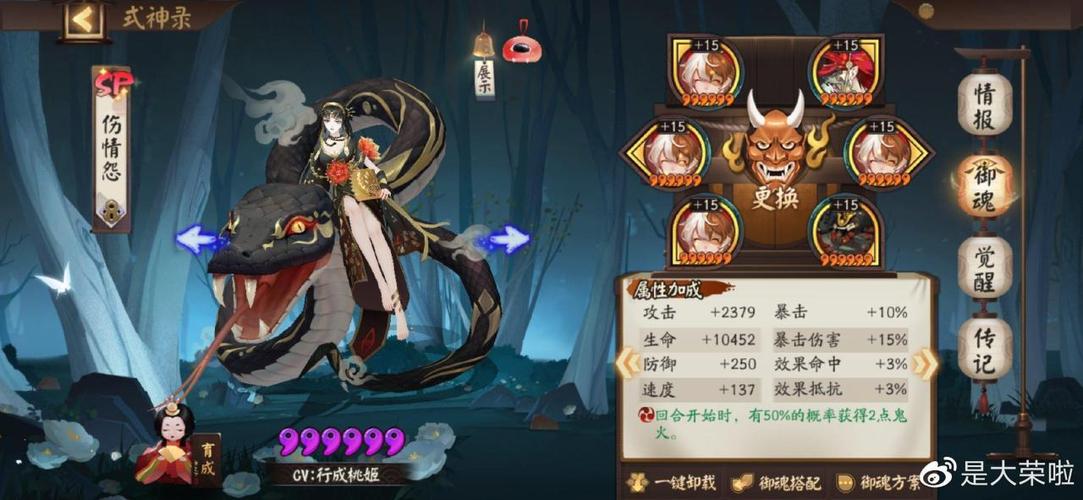 〖伍〗、辅助式神可以选取桃花妖、萤草、海坊主等辅助式神,也可选取凤凰火、大天狗等暴力输出式神,让阵容更符合客人自己打牌风格。