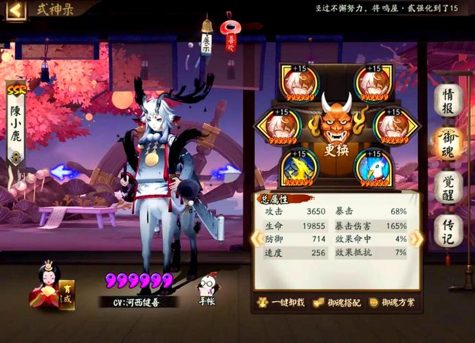 〖贰〗、号位:效果命中 6号位:暴击/暴伤 解析:此搭配方案主要侧重于控制。魅妖和反枕御魂能提供额外的控制效果,如眩晕,这对于打乱敌方节奏、阻止其回血等战术非常有效。地藏像×4,生命加成×2 2号位:速度 4号位:生命加成 6号位:生命加成 解析:此搭配方案注重提高小鹿男的生存能力。