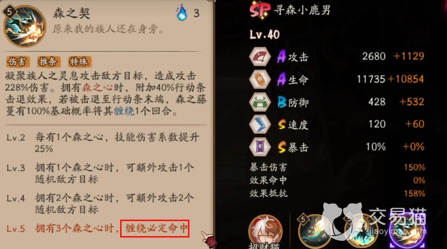 〖陆〗、寻森小鹿男作为SP阶式神,拥有独特的技能和定位。他的技能可能包括“林间息”、“寻鹿迹”和“森之契”等,这些技能将帮助他在战斗中发挥重要的作用。具体技能效果和战斗表现,玩家可以在游戏中通过实际体验来了解。