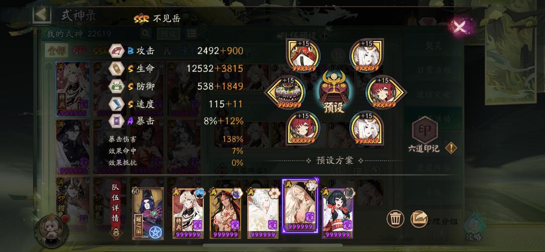 雷卡(如雷帝):直接伤害+打断SP鹿技能。风卡(如SP酒吞):提升己方速度与闪避,规避SP鹿控制链。地卡(如SP花鸟卷):增强防御与减伤,降低SP鹿输出威胁。御魂搭配 输出核心:建议「网切」或「破势」快速压血线。控制式神:选取「钟灵」或「魅妖」干扰SP鹿行动。