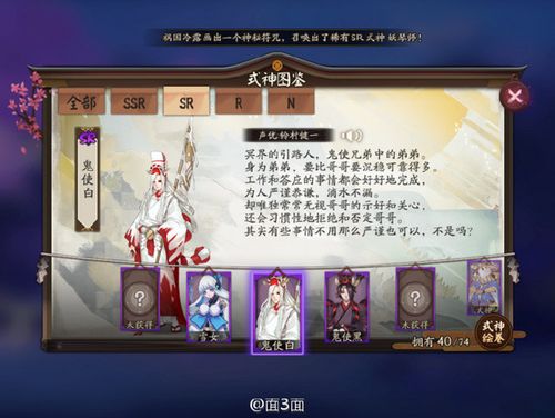 阴阳师中白无常(SR式神鬼使白)在以下地点分布较多:主线章节 第24章:在这一章中,每个三清姬旁边都有一个白无常,BOSS处也有一个,因此总共可以获得三个白无常。但考虑到效率和体力消耗,可能不是最优选取。御魂副本 御魂副本第4层:这里有一个白无常,但数量较少,不适合大量刷取。