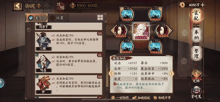 平民玩家可以选取招财猫二号位的御魂。搞定二号位后,其他位置的副属性也是至关重要的。强化得好,副属性可以提高102的速度。御魂的副属性是一出生就确定的,强化只是一个解锁的过程。玩家需要选取四星以上的御魂,副属性加速度且有两条以上副属性的留下。