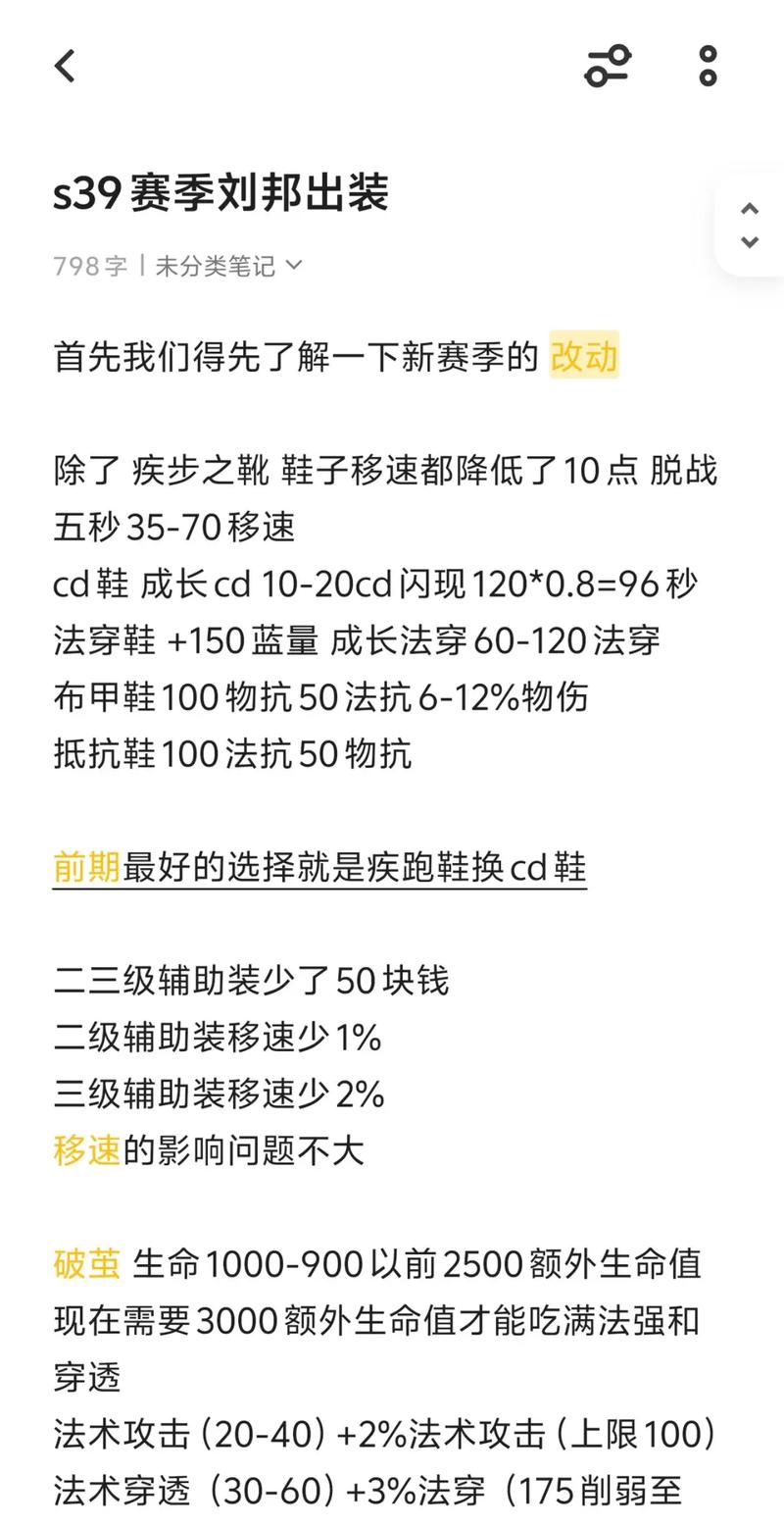 - 出装顺序:极影 - 抵抗之靴 - 不祥征兆 - 魔女斗篷 - 霸者重装 - 冰痕之握/名刀·司命/贤者的庇护 - 出装思路:这套装备适合刘邦作为辅助使用,玩家需要充分利用二技能来施加沉默,与队友协作进行gank。在团战中,刘邦应承担前排责任,吸收关键技能。后期可以将名刀替换为复活甲。