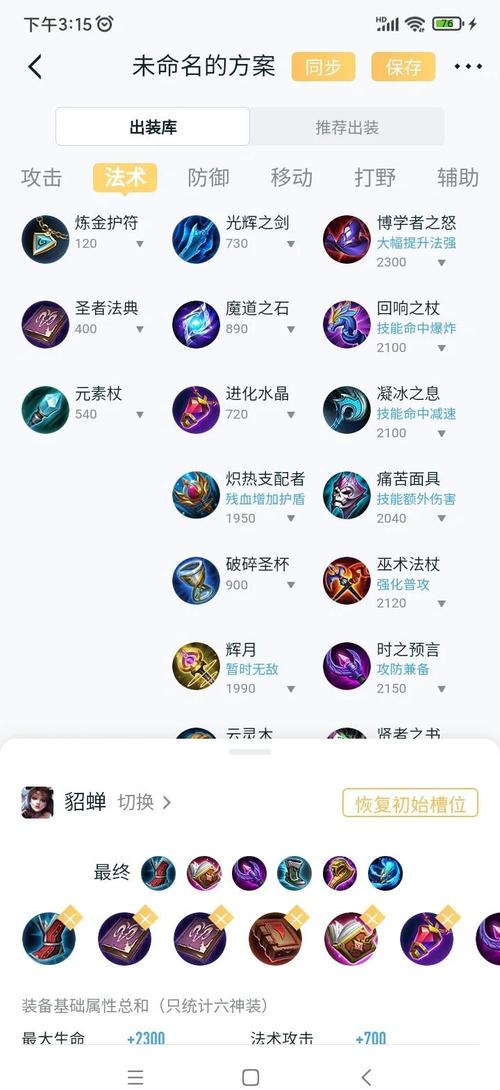 〖贰〗、噬神之书:增加法术攻击和冷却缩减,同时提供高额的法术吸血效果,是貂蝉半肉吸血流的核心装备。破茧之衣:提供法术攻击和生命值加成,当生命值低于一定百分比时,还会获得额外的法术防御加成,提升貂蝉的坦度。不祥征兆:增加物理防御和生命值,同时减少攻击者的攻击速度和移动速度,有效克制敌方物理输出。