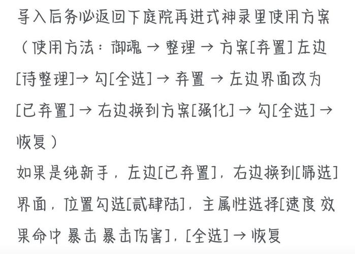 阴阳师御魂总结的具体方法主要包括以下步骤:初步筛选与清理 筛选并丢弃两条腿六星御魂:由于御魂的成长上限固定,两条腿(即副属性只有两条)的六星御魂即使属性有效,成长后也大概率无法满足需求。因此,这类御魂可以直接全部奉纳,除非极度缺少特定的二号六星速度或六号暴击御魂,可以考虑单独留出。
