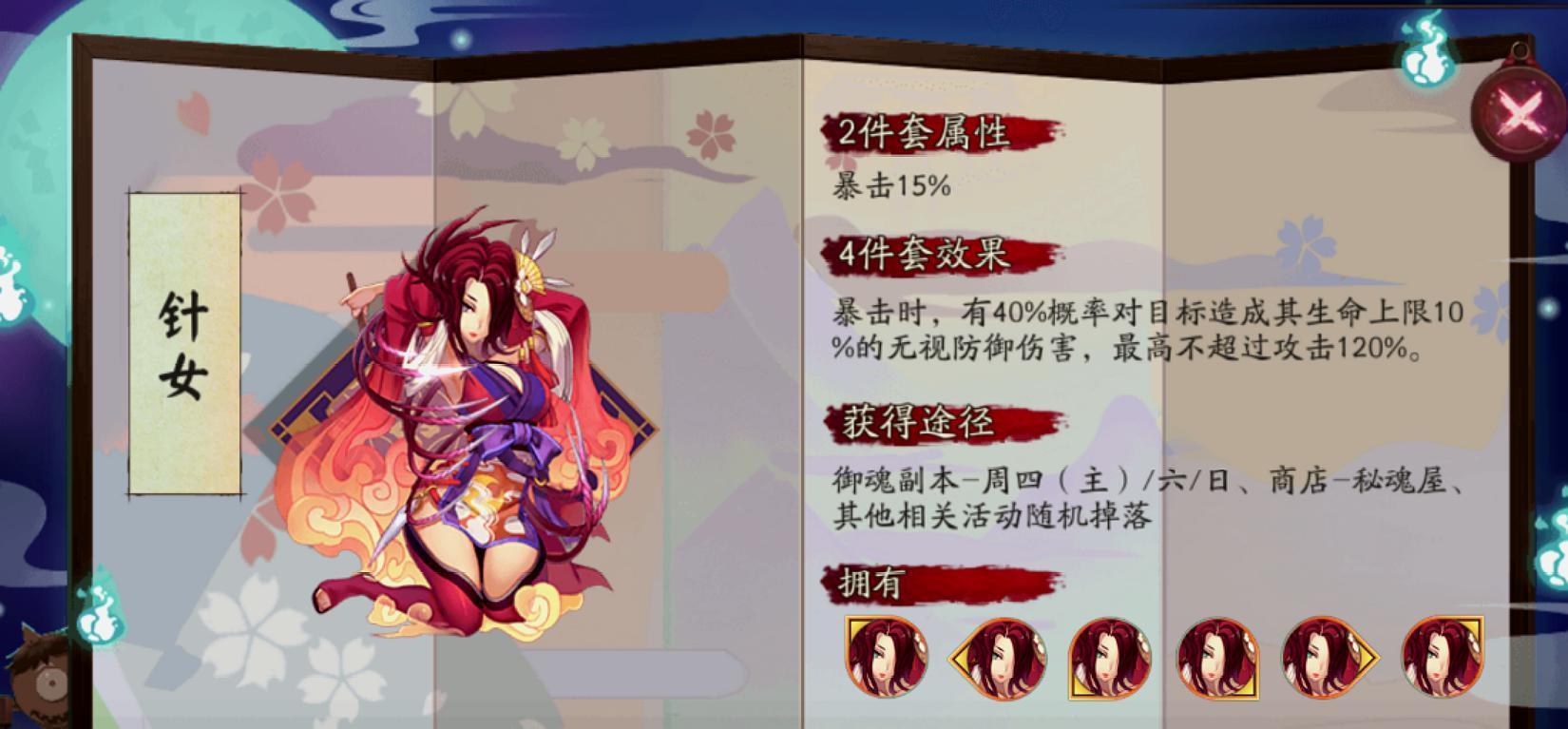 阴阳师五星针女满级加的暴击是多少?跟其它御魂在同样五星六号位的情况...