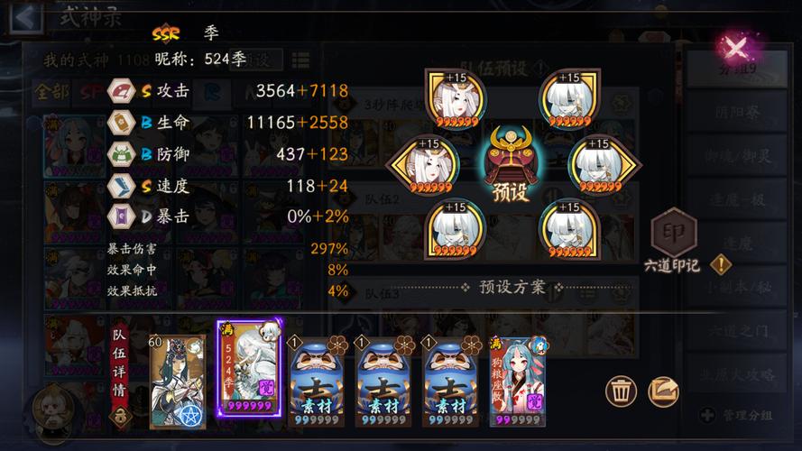 〖伍〗、阵容一:心眼丑时之女+针女姑获鸟+高速破势吸血姬+桃花妖+惠比寿+神乐,适合多种情况。阵容二:针女姑获鸟+双群体输出+座敷童子/辉夜姬+奶,输出高且奶量足。阵容三:针女姑获鸟+群体输出+椒图+座敷童子/辉夜姬+奶,适合防御较低的情况。