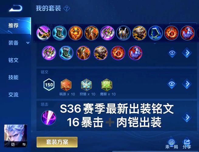 〖肆〗、暗影战斧 提供冷却缩减、物理穿透和生命值,前期必备过渡装。无尽战刃 万爆流核心装备,直接提升暴击率和暴击效果(+40%暴击效果),配合凯的被动(单体目标增伤50%)实现高额爆发。宗师之力 强化技能后的普攻(+12%移速+0.8AD伤害),完美契合凯二技能后的强化普攻,进一步放大暴击收益。