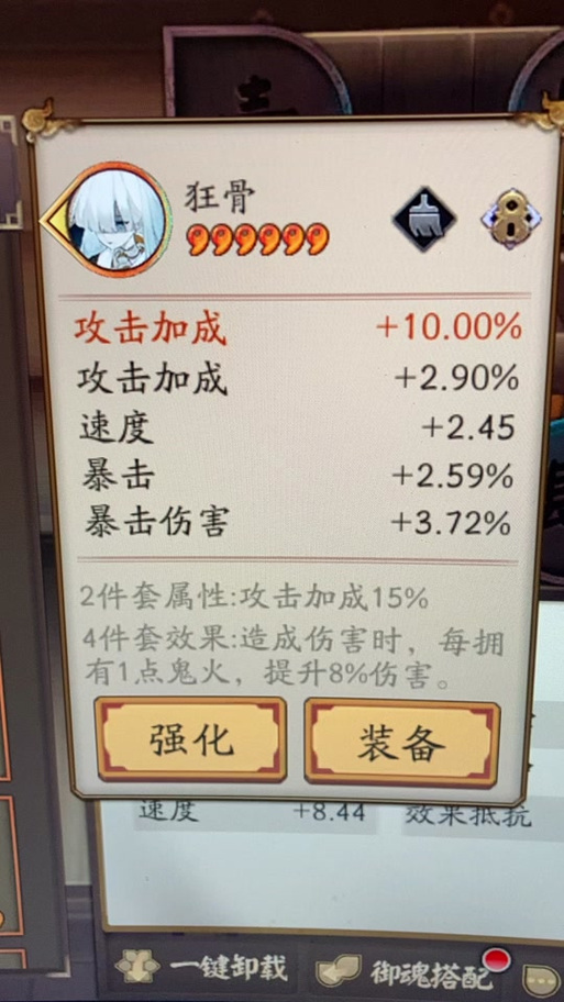 首先,从玩家反馈和实际测试来看,御魂加成效果在999副本中并不生效。有用户明确提到“魂十要吃加成999不用”,这里的“魂十”指代的是“御魂十层”副本,而“999”则特指业原火痴之阵。这一区分表明,不同副本对御魂加成的适用性存在差异。