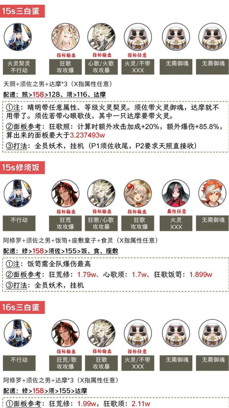 〖壹〗、阴阳师速攻爆伤狂荒烬魂土攻略如下:基础配置要求 烬天玉藻前面板要求:根据面板数值的不同,有不同的搭配策略。18000以上面板、19000以上面板、20000以上面板的烬天玉藻前,分别对应不同的速度和属性配置。速度要求:主要输出式神(烬天玉藻前)的速度要达到一定标准,如158+或156+,以确保在战斗中先手输出。