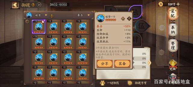 〖肆〗、六号位六星暴击御魂:选取六号位为六星暴击属性的御魂,可以大幅提升暴击率。如果没有六星暴击御魂,五星的也可以作为过渡使用。追求满暴击:在确保六号位为暴击御魂的前提下,通过其他位置的御魂副属性来增加暴击率,直到达到100%暴击率。这是堆暴击的最基本要求。