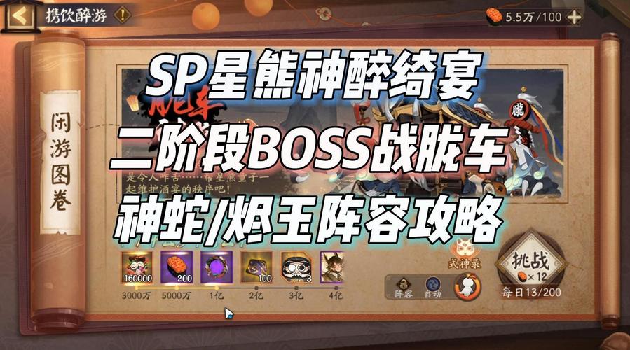缚骨清姬 全程不放蛇,二次三技能 一次普攻即可完全破防胧车。千姬 千姬插旗后普工,其余式神妖术,标记bosss,晴明先灭后星。帝释天 开局莲花给boss。缘结神 提高阵容续航能力。麓铭大岳丸 大招直接进行输出,对BOSS造成高额伤害。