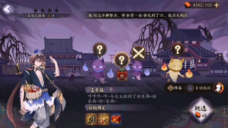 〖贰〗、② 玉手箱:宝箱,点击可直接获得【永生贝】、寮资金以及阴阳寮勋章。③ 铁鼠寻宝:自选阵容和押注的货币数目,和铁鼠开启自动战斗。类似对弈竞猜和协同的合体!大家可以自由选取是否要提高对弈的难度,提高难度的话给的货币会更多,但铁鼠的阵容也会获得额外的战斗加成(比如回合外增伤之类的)。
