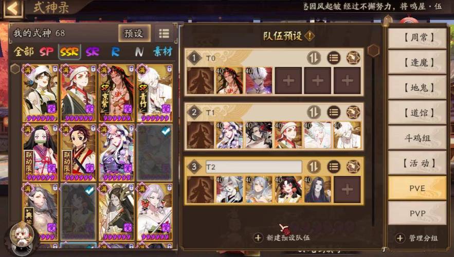 新区携带式神推荐:首先,推荐式神包括千姬、麓铭大岳丸、烬天玉藻前、鬼王酒吞童子。千姬具有广泛适用性,主要功能在于回火增伤,对于秘闻副本和反击场景非常适合。麓铭大岳丸和烬天玉藻前则在pvp和pve中表现均衡,是开荒的好选取。鬼王酒吞童子虽然不是全面性辅助,但如果抽到了SSR千姬,也可以完全替代。