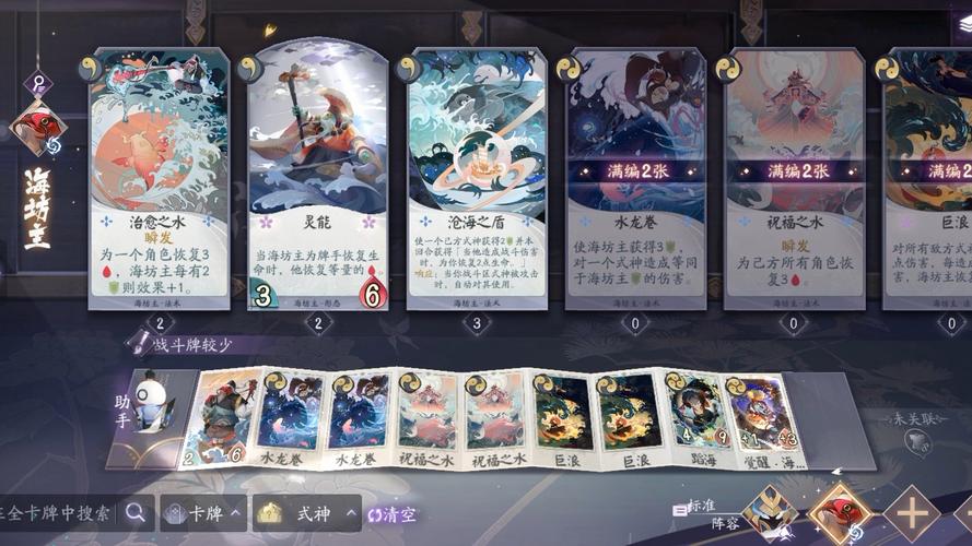 〖肆〗、海坊主也可以换判官(解牌+回血触发青坊主)。起手手牌主要留妖狐觉醒,妖狐聚气,以及青坊主禅心。如果对面是快节奏牌组,比较好能留青坊主的佛光,不至于被秒。妖狐觉醒后,手里多张明灯,属于闭着眼睛打的局,就没什么好教的了,不要太过于纠结狂风刃卷的增强效果,该出手就出手。