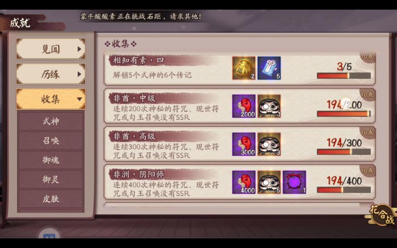 〖壹〗、首先,在庭院中选取任务,点击进入 进入后,我们选取右边的成就栏目 进入后一直下拉成就任务,直到看到召唤术。那么这里就可以看出你抽了多少次了。