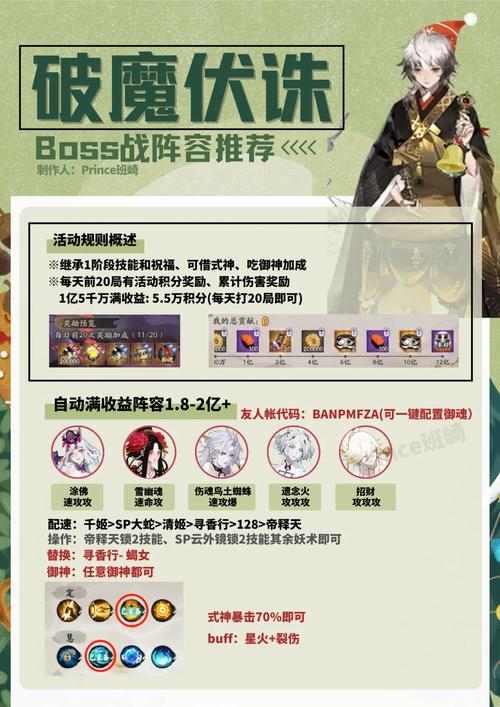 在《阴阳师》游戏中,选取赠送式神时,应考虑式神的输出能力与特性。首先推荐阿修罗,其爆发伤害和输出能力出众。其次,夜刀神是纯PVP式神,输出强度独树一帜。SP八岐大蛇的攻击面板属性极高,其大招能附加128%的单体伤害。烬天玉藻前技能能够偷取全场攻击,造成高单体伤害。