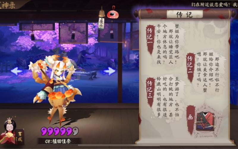 〖贰〗、【式神玩具喜好表一览】阴阳师妖怪屋蟹姬喜欢食品物品介绍蟹姬喜欢的食物是美味的-海鲜拉面。PS:海鲜拉面的制作需要的材料是:章鱼、虾、面粉。蟹姬喜欢的玩具是飞高高的-风筝。蟹姬作为跟随活动一块儿来袭的式神还是非常容易获取到的。很多的朋友们们对于这位可爱的式神都非常的感兴趣呢。