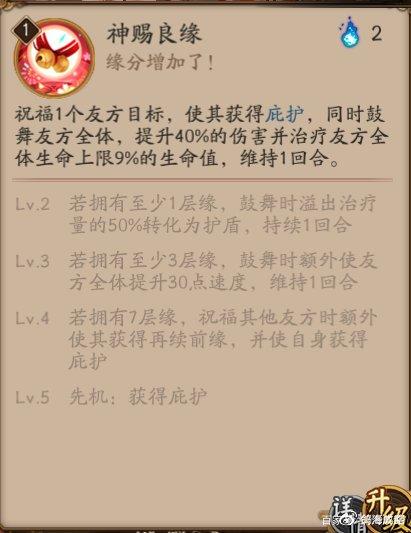 〖壹〗、阴阳师是一款网易旗下的二次元手游,其中阴阳师全新SP式神纺愿缘结神将于7月26日正式上线,许多朋友们好奇这个式神怎么样,下面深空小编就给大家带来了阴阳师纺愿缘结神技能介绍,希望能够帮助到大家,感兴趣的玩家一起看一看吧。
