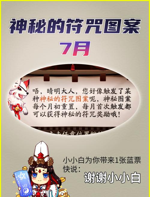 - **图案主题**:5月份的神秘符咒图案是爱心形状。- **画法指导**:从爱心的底部尖端开始,逆时针方向绘制,确保心形饱满,边缘触碰到边界,可能需要多试几次以达到最佳效果。奖励内容 - **触发概率**:成功绘制出5月份的神秘符咒图案后,玩家有机会获得现世召唤符等奖励。