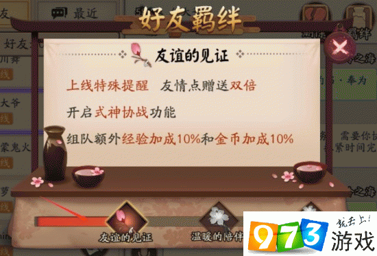 〖贰〗、在《阴阳师》这款游戏中,玩家可以通过与好友互动来提升彼此之间的亲密度,从而解锁各种有趣的羁绊事件和福利。当你和某个好友的亲密度达到2000点时,你们之间的关系就会升级为“永远的羁绊”,这在游戏内被称为“三花”。