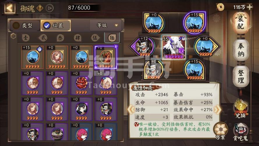 〖叁〗、方案一:破势×4,荒骷髅×2 御魂位置分配:2号位攻击加成,4号位攻击加成,6号位暴击伤害。解析:破势御魂强化攻击力,易于叠加面板,实现爆炸性输出。方案二:火灵×4,荒骷髅×2 御魂位置分配:同上。解析:火灵御魂与荒骷髅组合,面板约65W,独特能力显著。