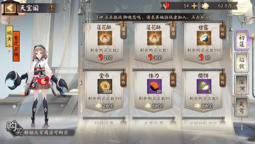 鬼域讨伐 鬼域讨伐分七个副本,每天零点解锁一个,可通过莲花酥的消耗开启。其中,莲花酥每天系统会赠送一个,活动商店亦可借助勾玉购买。