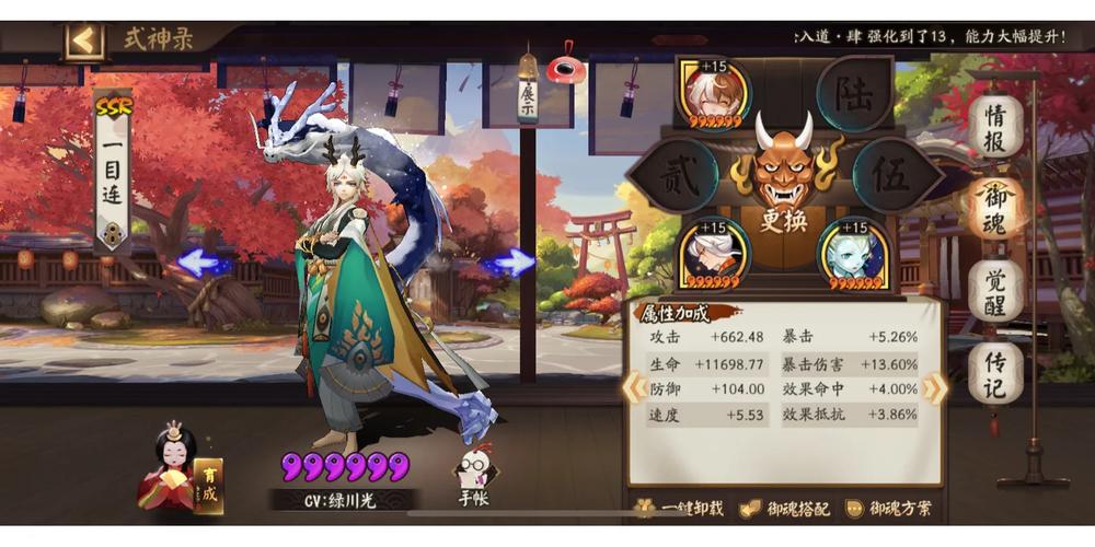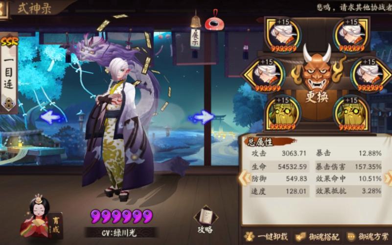〖壹〗、破势4件套 2件暴击(2号位:攻击,4号位:攻击,6号位:暴击):这套御魂是苍风一目连最常用的搭配之一。不仅可以增强其输出能力,还能提升风盾的保护效果。需要注意的是,该套御魂需要满暴击率,攻击和暴击伤害越高越好。