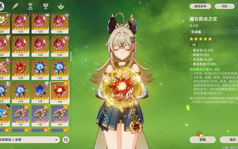 〖陆〗、首先,圣遗物方面,玛薇卡适合使用能提升火元素伤害和反应的套装。例如,炽烈的炎之魔女套装就是一个不错的选取,它能显著提高火元素伤害加成和反应效果。在词条选取上,主词条应优先考虑攻击力、火元素伤害加成、暴击率和暴击伤害,而副词条则可以选取暴击率、暴击伤害、攻击力和元素精通或元素充能效率。
